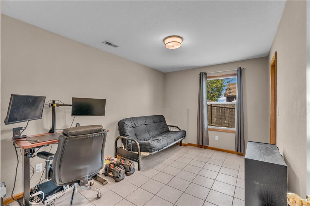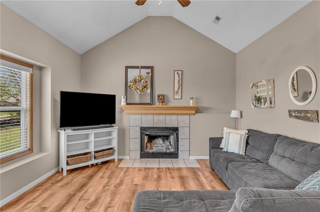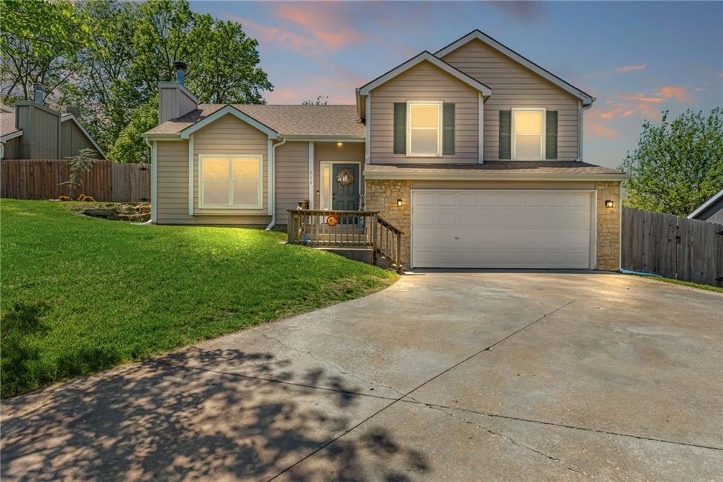 Welcome to this charming 4BR/3BA home in west Lawrence, an easy stroll from Stonegate Park. Comfortable and clean with new lighting fixtures throughout and some new paint, this practical layout features a kitchen (all appliances stay) open to a nice dining space and a lovely living room with vaulted ceilings and wood-burning fireplace to gather around. The primary bedroom has double closets and a great ensuite bathroom with double vanity, while a 4th bedroom in the basement would also make a perfect office, playroom or flex space. Lots of room to roam or relax around the firepit in the deep fenced backyard. Newer HVAC for years of peace of mind ahead. Deerfield/West/Free State schools. Lets go!