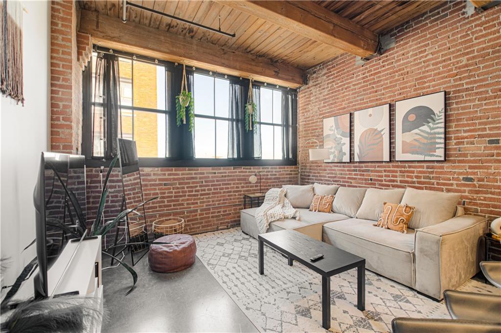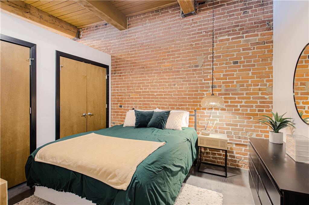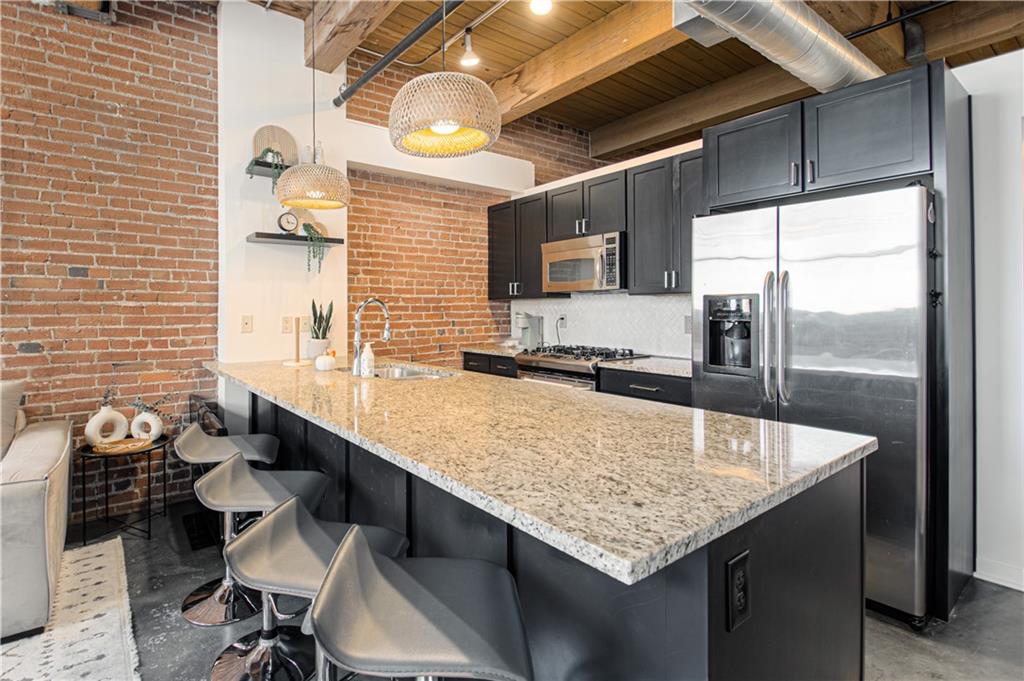 Come see this beautiful, fully furnished downtown condo! It doesn't get any easier! Located close to bars, restaurants and highways-only a few blocks to the free streetcar and just steps from the River Market area. A fantastic dog park is right up the street and e-bike rentals/Bike Share KC is right at your doorstep. This 1 bedroom, 1 bathroom condo is in a very quiet hallway; it's close to everything, but still located in a quiet area. It has been wonderfully updated and boasts beautiful polished concrete floors, granite counter tops, plenty of exposed brick and natural wood beams, lots of natural light, high ceilings, and being on the 5th floor, a fantastic view of the downtown airport, the Missouri River and beautiful sunsets. All stainless steel appliances stay, as well as the washer & dryer(LG). Included in the sale are the furniture and furnishings that is everything anyone could ever need to call this home! A wonderful sectional couch, bed, barstools, all shelves, shelving units, dresser, desk, 2 large screen TVs, even pots, pans, plates, glasses and silverware! (**Please note that the Kitchen Aid standing mixer does not stay**)Extra storage in the basement comes with the unit. Gated parking is available right next to the building; above ground $85/month & covered parking below is $110/month. Amenities include water, a wonderful fitness room, theater room, club house and sauna, building maintenance, trash pick up, snow removal, etc. A relatively low monthly HOA Fee for all of this is more than worth it! Whether you're a first-time home buyer, or a couple or single that just wants a place to enjoy downtown living, this place is perfect. Don't wait-schedule a tour today!